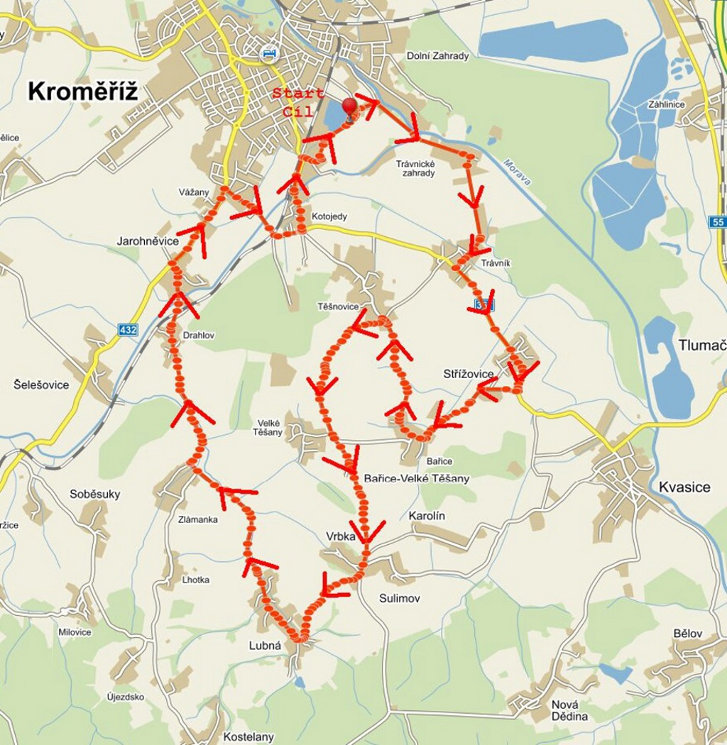POZOR ZMĚNA!!! Cyklistická část 29km povede směr Trávník, Střížovice, Bařice, Těšnovice, Vrbka, Lubná, Zlámanka, Drahlov, Vážany a Kotojedy.