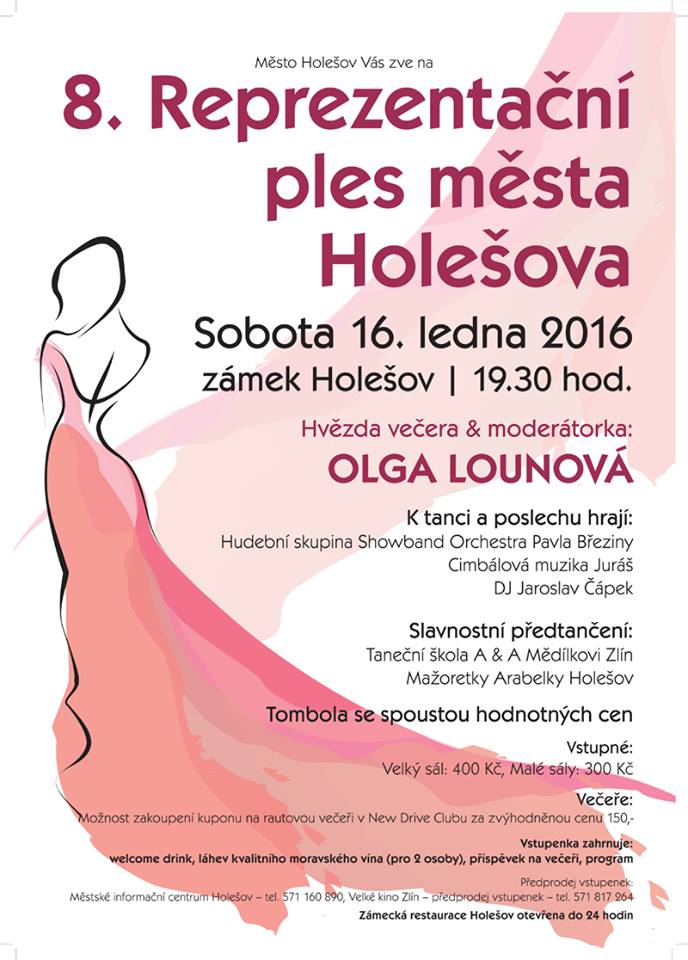 Město Holešov pořádá v sobotu 16. ledna 2016 na zámku v Holešově již 8. Reprezentační ples města, kde letošní hvězdou večera a také moderátorkou bude zpěvačka, skladatelka a herečka Olga Lounová.