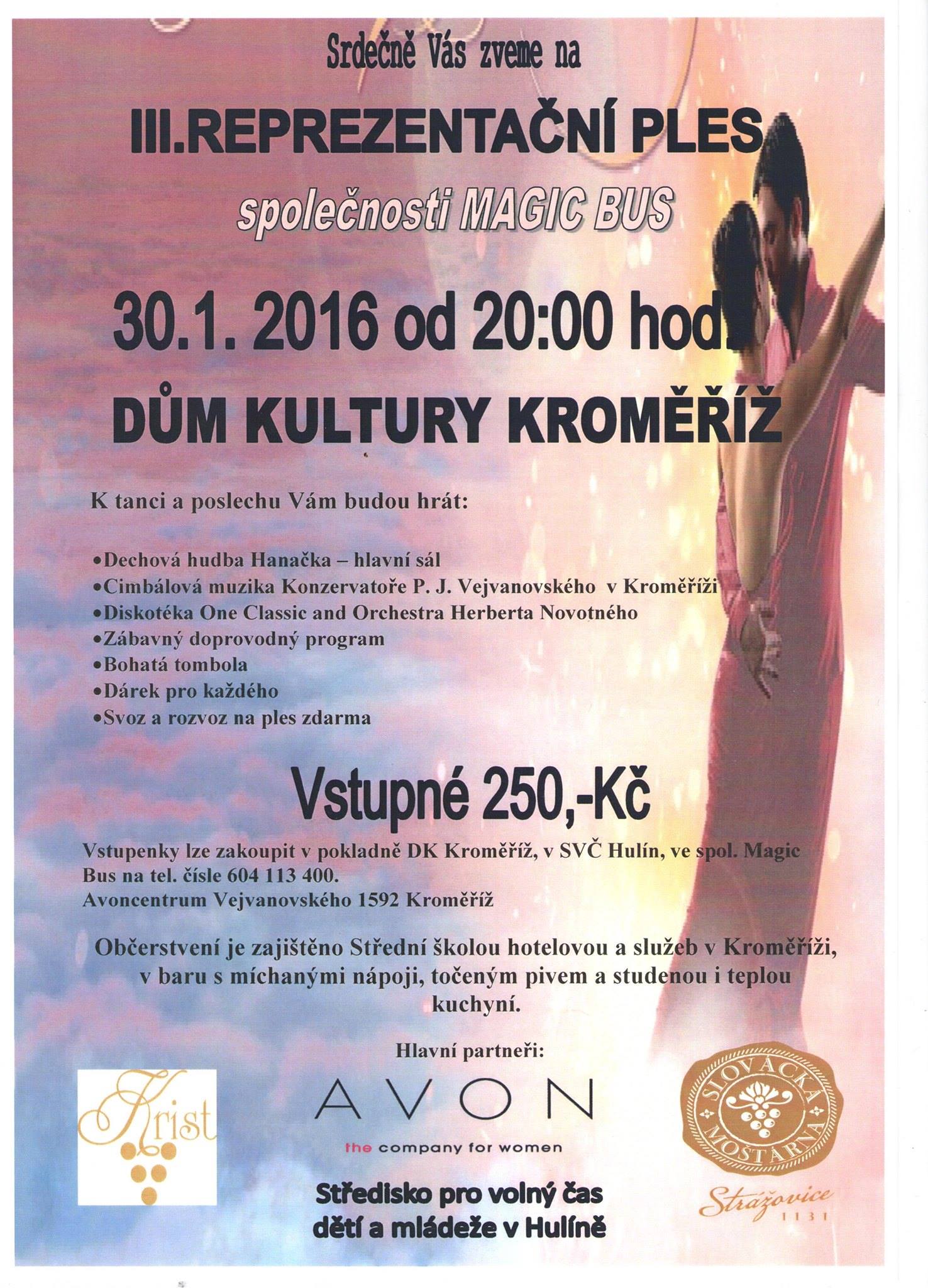 III. reprezentační ples společnosti Magic Bus, která se mimo jiné podílí na městské hromadné dopravě v Kroměříži, se uskuteční v sobotu 30. ledna v kroměřížském Domě kultury.