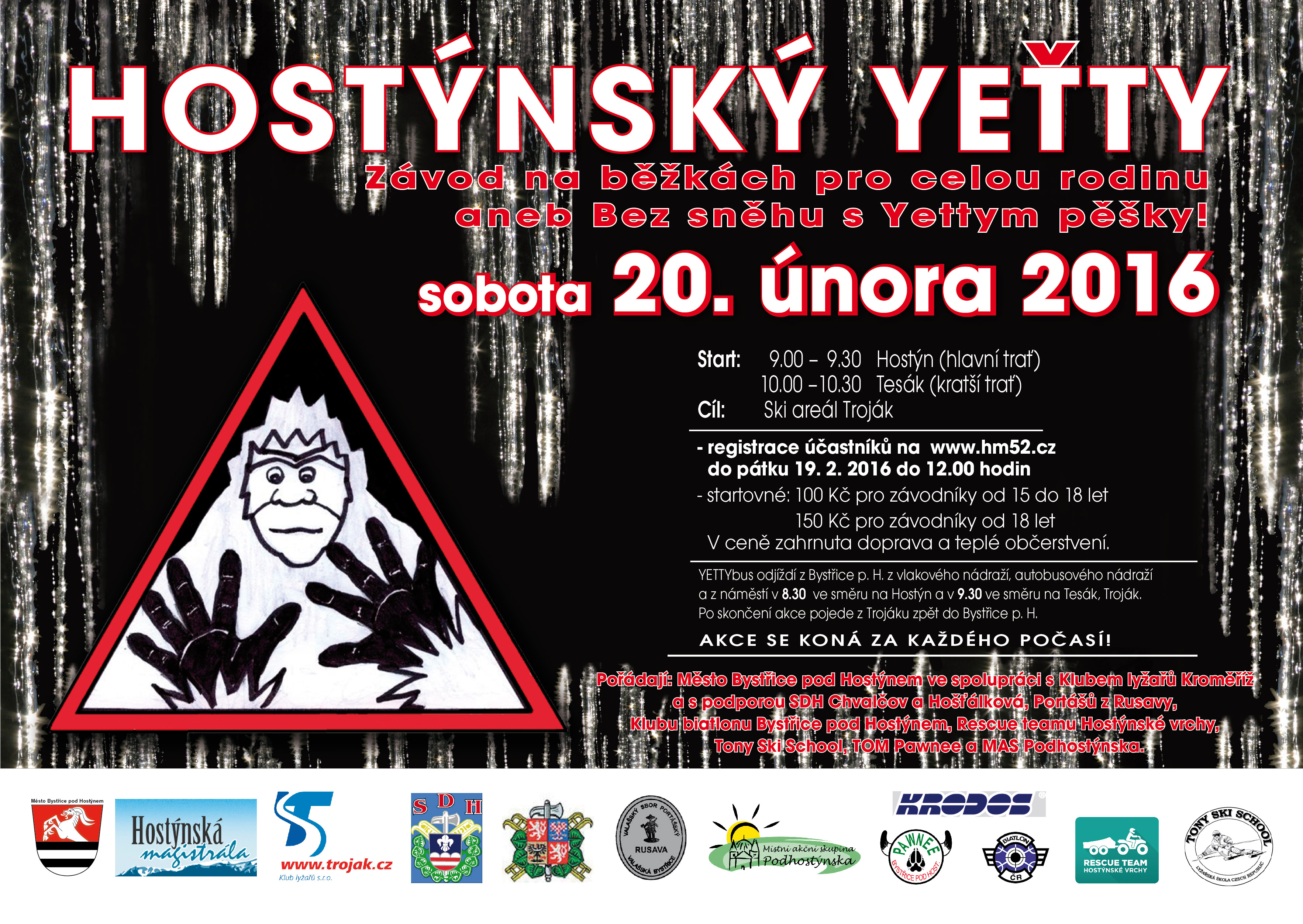 Hostýnský Yetty společně se svými přáteli zve na sedmý běžecký závod pro celou rodinu "HOSTÝNSKÝ YEŤTY", který se uskuteční v sobotu 20. února. Start závodu bude tradičně v 9 hodin na Svatém Hostýně a v 10 hodin na Tesáku.