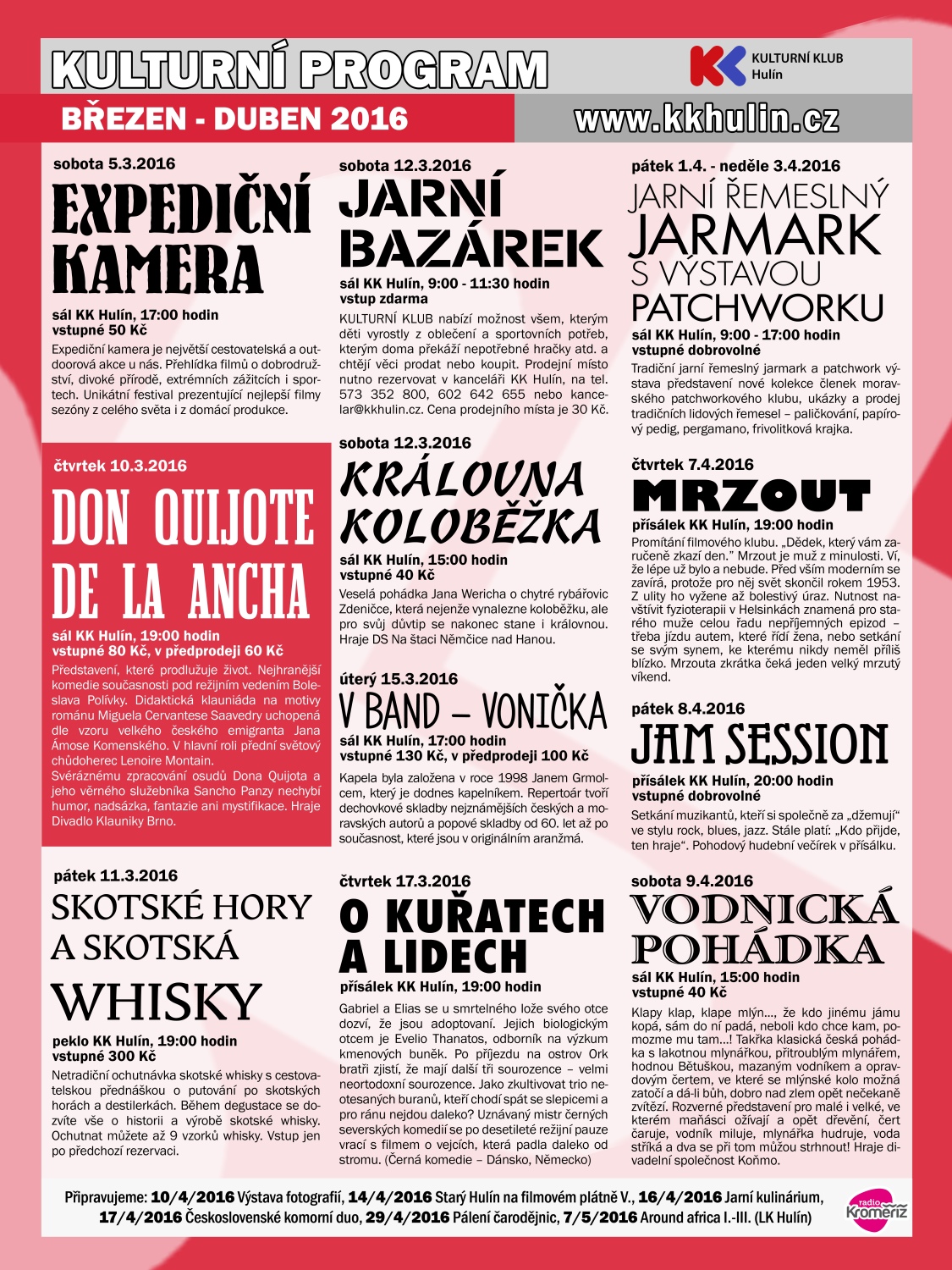 Informace o předprodeji a kompletní březnovou nabídku hulínského Kulturního klubu naleznete ZDE >>