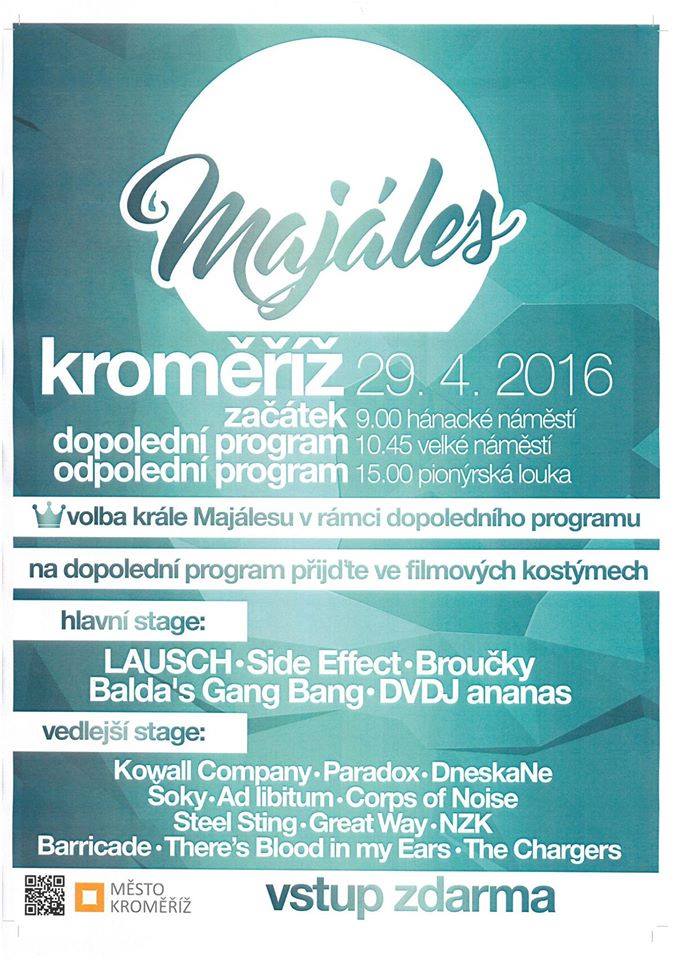 Majáles pořádaný studenty pro studenty převážně středních škol i širokou veřejnost se koná během celého pátku 29. dubna v různých částech Kroměříže. Průvod a dopolední program se odehraje na Velkém náměstí, odpolední a večerní program pak na Pionýrské louce.