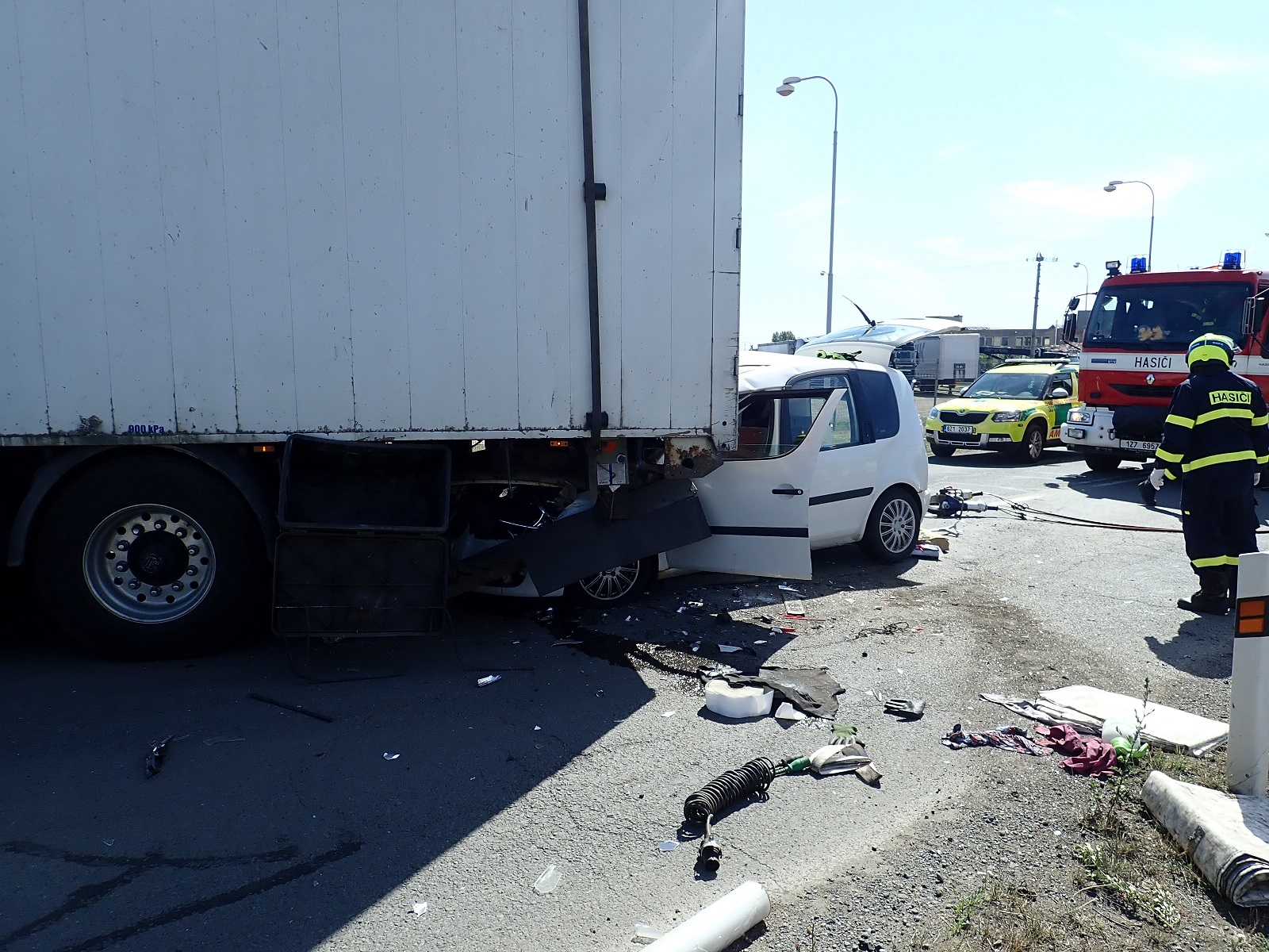 U nehody kamionu a osobního automobilu na ulici Kaplanova v Kroměříži zasahovali od 9:59 hodin profesionální hasiči z Kroměříže. K vyproštění zraněného řidiče z osobního automobilu hasiči nepoužili hydraulické vyprošťovací za…