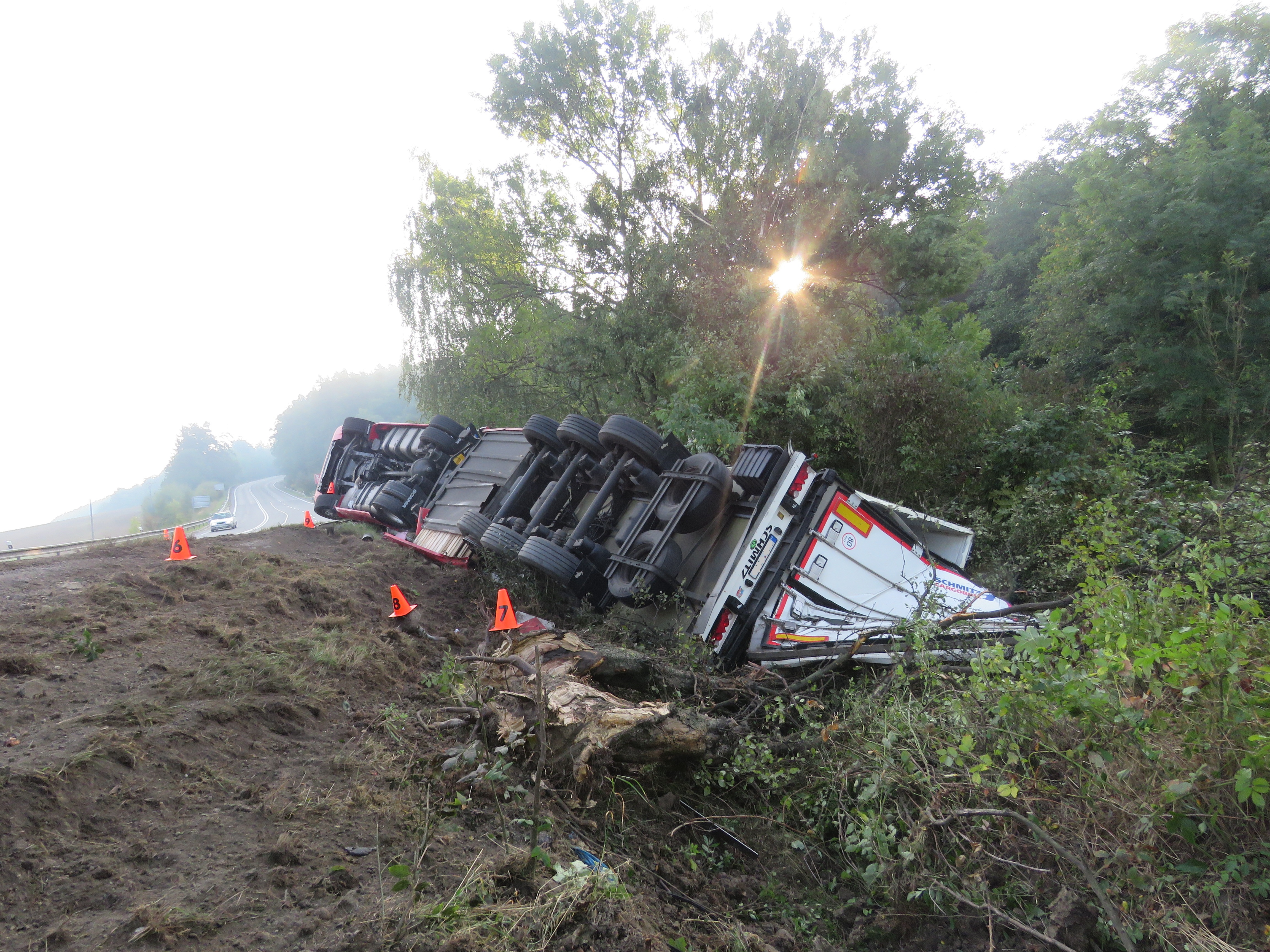 V neděli ráno v šest hodin nezvládl na silničním tahu I/50 v katastru obce Zástřizly řízení nákladního automobilu s návěsem šestadvacetiletý řidič z Pardubicka, který jel směrem od Kožušic na Uherské Hradiště. Po průjezdu levotočivo…