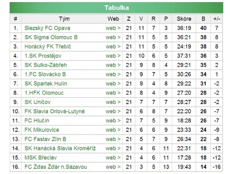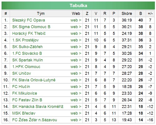 Dosud předposlední Hanácká Slavia Kroměříž hrála na hřišti Mikulovic a po remíze 1:1 se posunula před Břeclav na 14. místo tabulky. V příštím kole ji čeká těžký zápas s druhou Sigmou Olomouc "B".