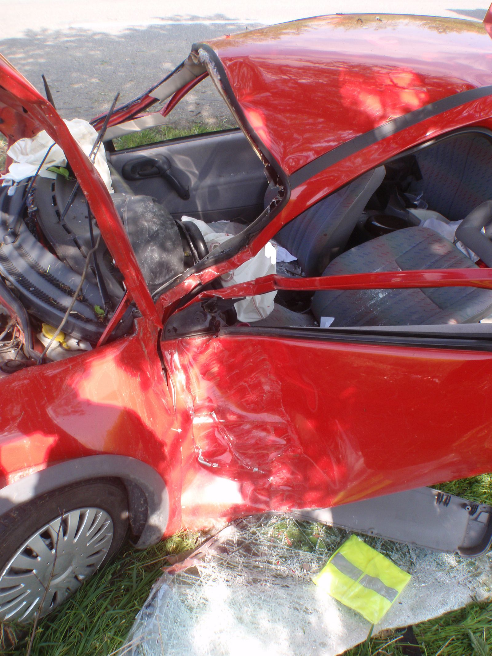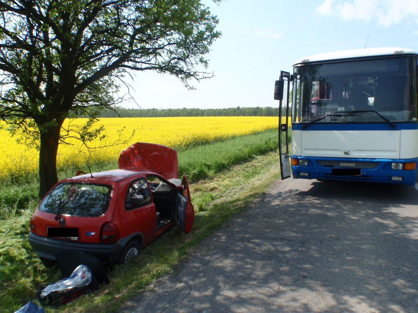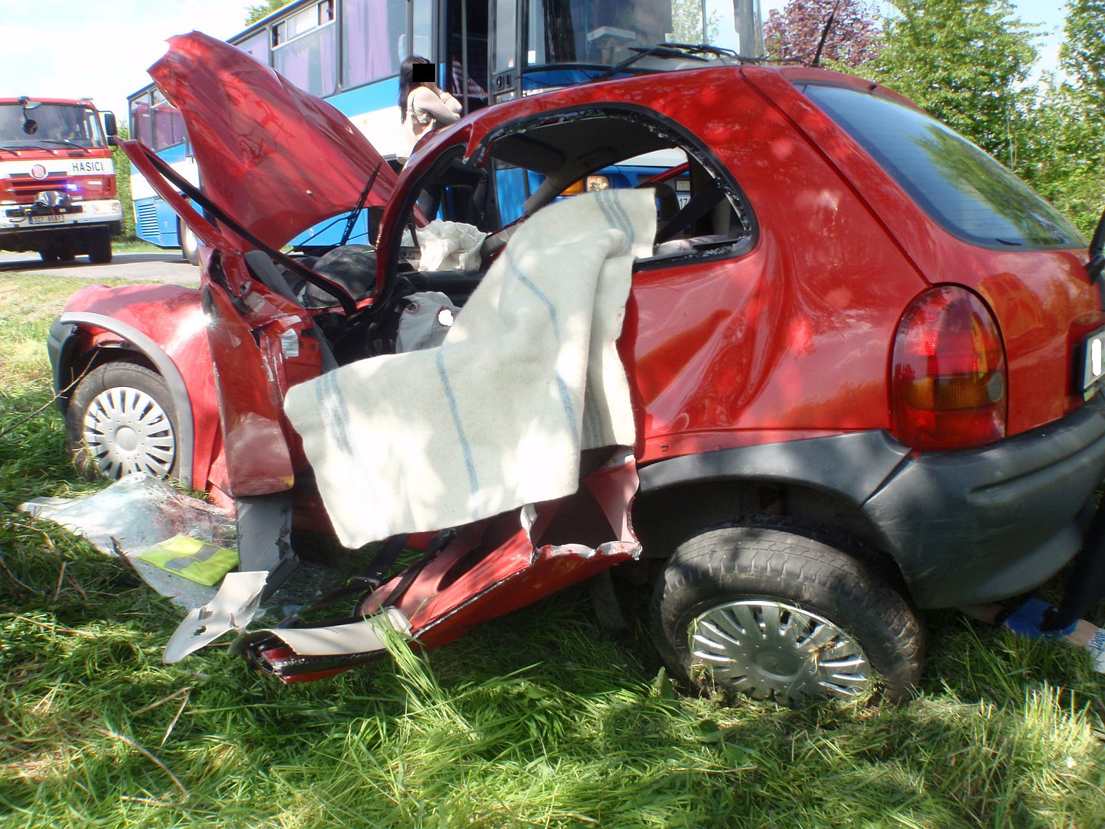Autobus zůstal po střetu stát na silnici, osobní atuo pokračovalo v jízdě do příkopu, kde narazilo do stromu. V osobním vozidle zůstala zaklíněna jeho řidička, kterou hasiči vyprostili za použití hydraulických vyprošťovacích zařízení a předali ji do péče záchranářů.