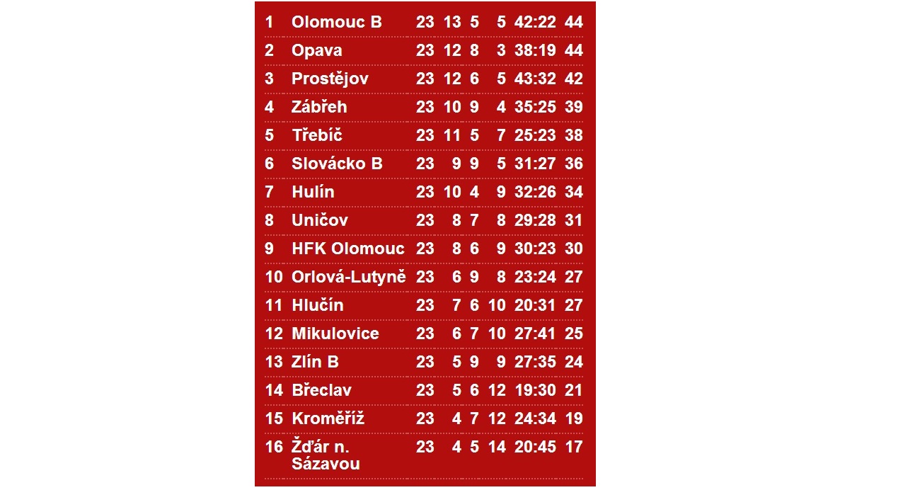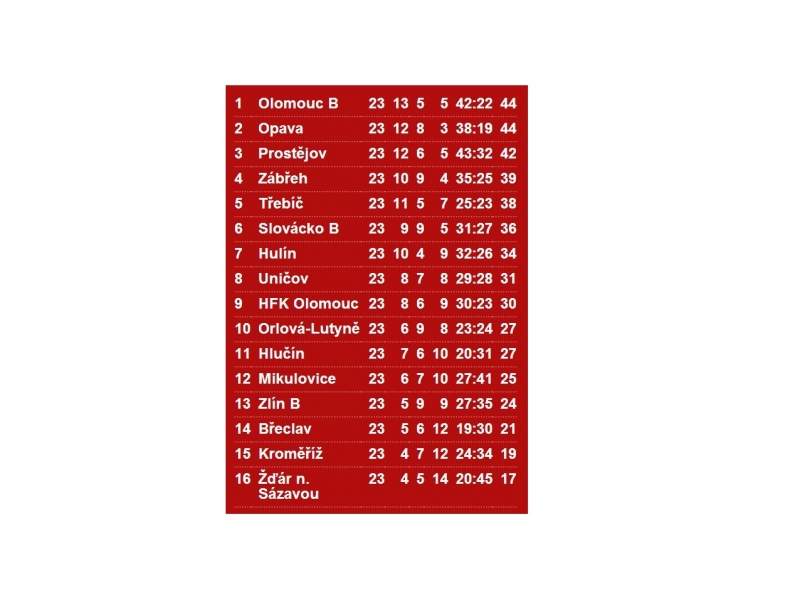 Hanáci jsou v tabulce na předposledním místě s 19 body s dvoubodovým náskokem před posledním Ždárem, na jehož hřišti se Hanáci představí v neděli 4. května.