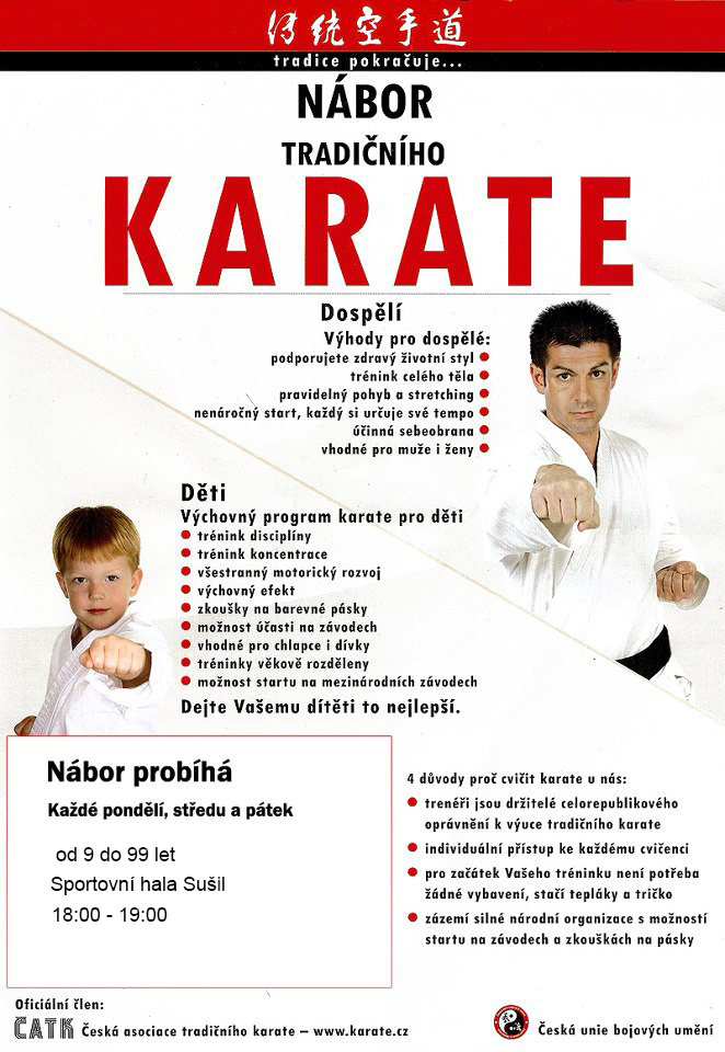 Klub karate TJ Bystřice pod Hostýnem aktuálně pořádá nábor nových členů, podrobnosti naleznete zde: