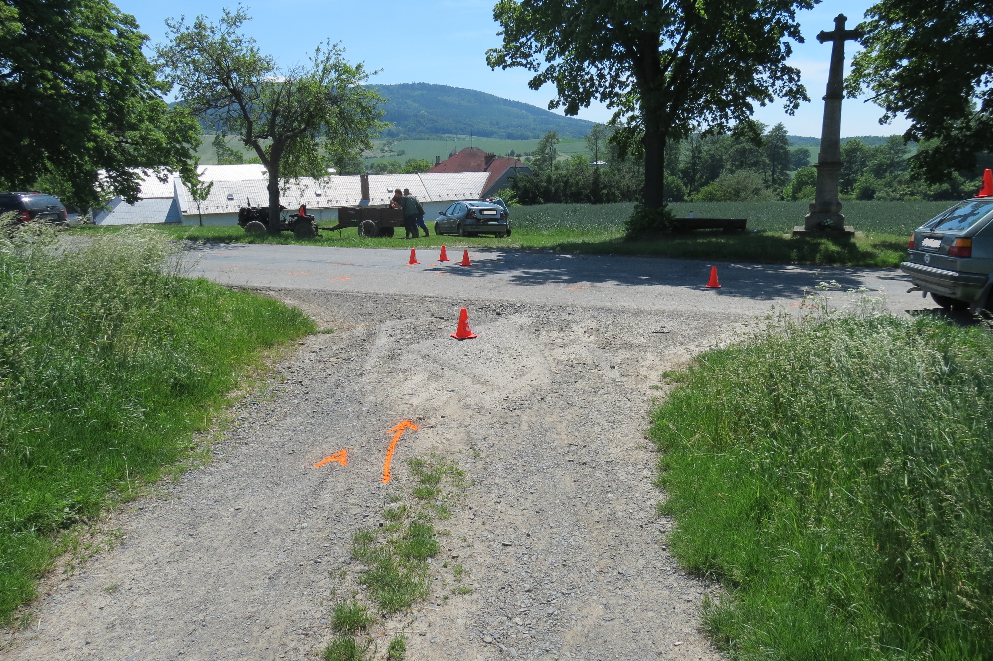 K další nehodě malotraktoru vlastní výroby s přívěsem došlo v neděli krátce po poledni v katastru obce Chomýž. Jeho pětasedmdesátiletý řidič při výjezdu z polní cesty na komunikaci přehlédl jednačtyřicetiletou ženu za volantem osobního automobilu Volkswagen Golf a nedal jí přednost.