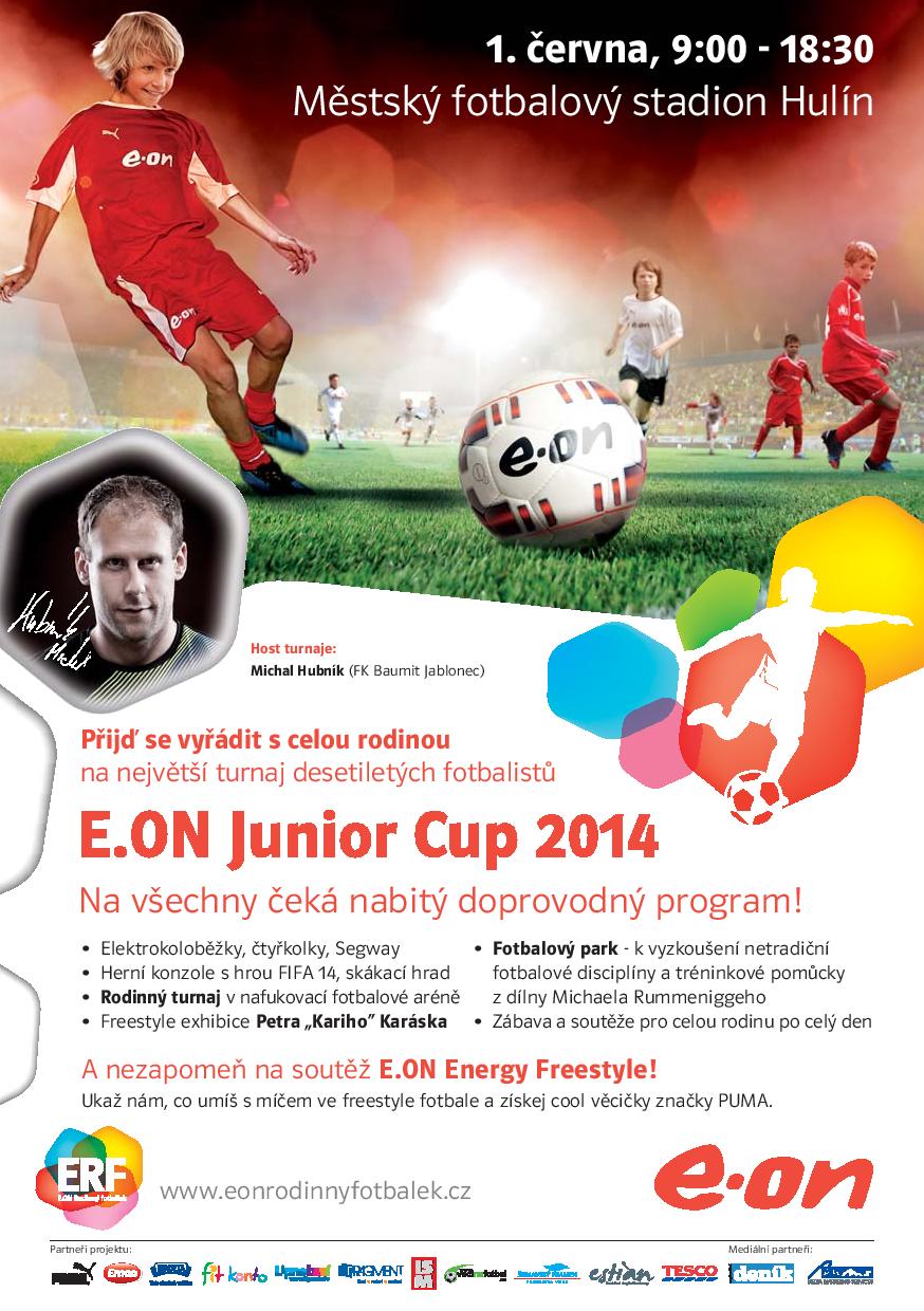 V neděli 1. černa 2014 se můžete po celý den na fotbalovém hřišti Spartaku Hulín těšit na spoustu zábavy a atrakcí. Zavítá tam největší fotbalový turnaj pro děti do deseti let v České republice - E.ON Junior Cup. Na turnaji bude startovat i dívčí tým. Turnaj bude zahájen v 9 hodin a potrvá až do večera.