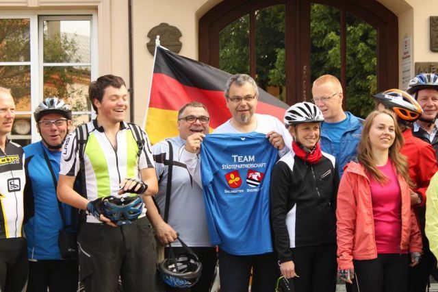 Ve středu ráno odjela třicetičlenná česko-německá skupina cyklistů od bystřické radnice na 900 km dlouhou cyklotour, která má cíl právě v Salzkottenu. Za 60 hodin se tam cyklisté z obou partnerských měst potkají s dalšími desítkami Bystřičanů, kteří vyrážejí akci podpořit po své vlastní ose. Trasa je rozdělena na tři úseky po čtyřech etapách. Společný tým s doprovodem, čtyři smíšené skupiny, chce zvládnout vzdálenost mezi městy Bystřice pod Hostýnem a Salzkotten za tři dny.