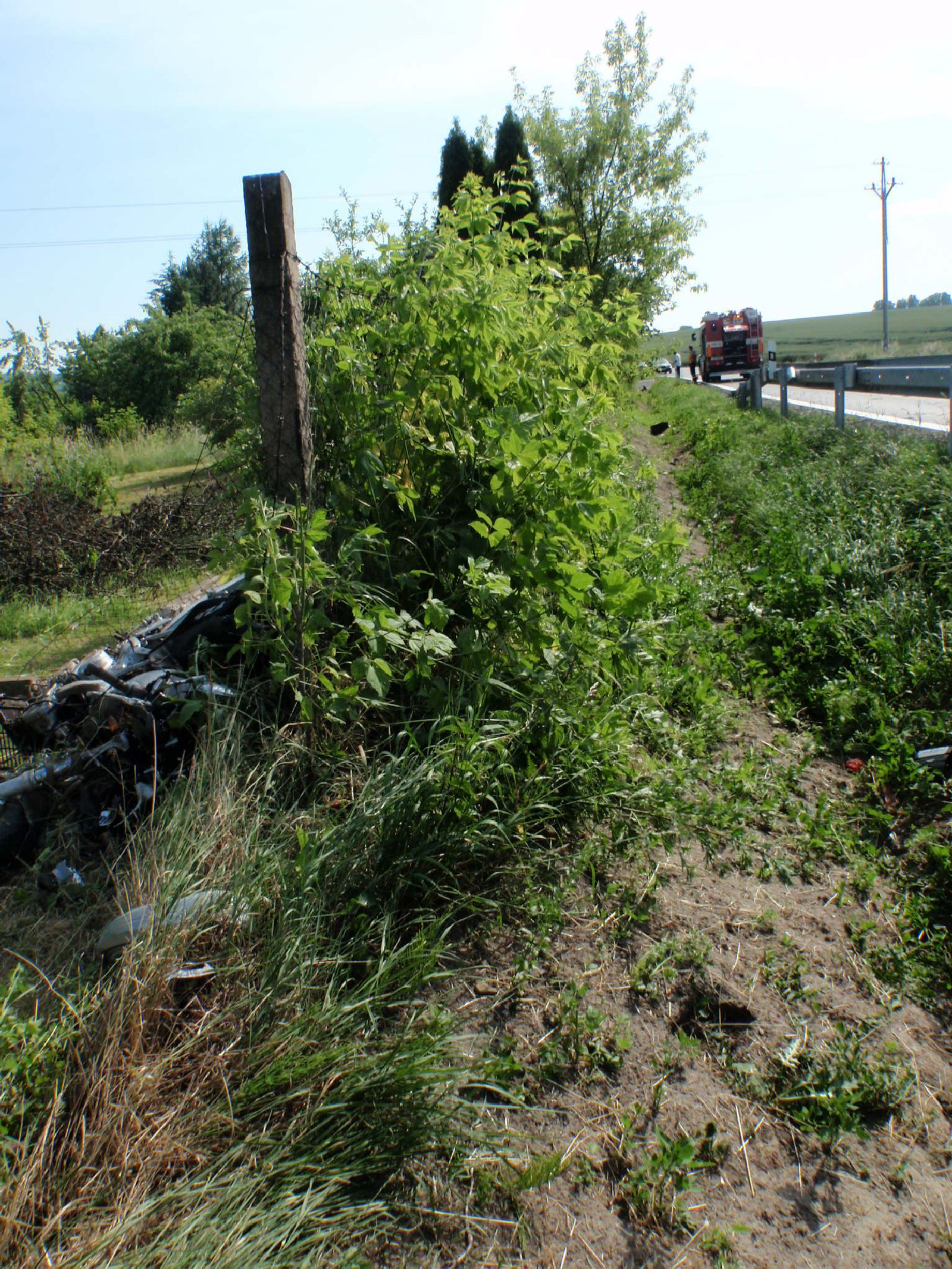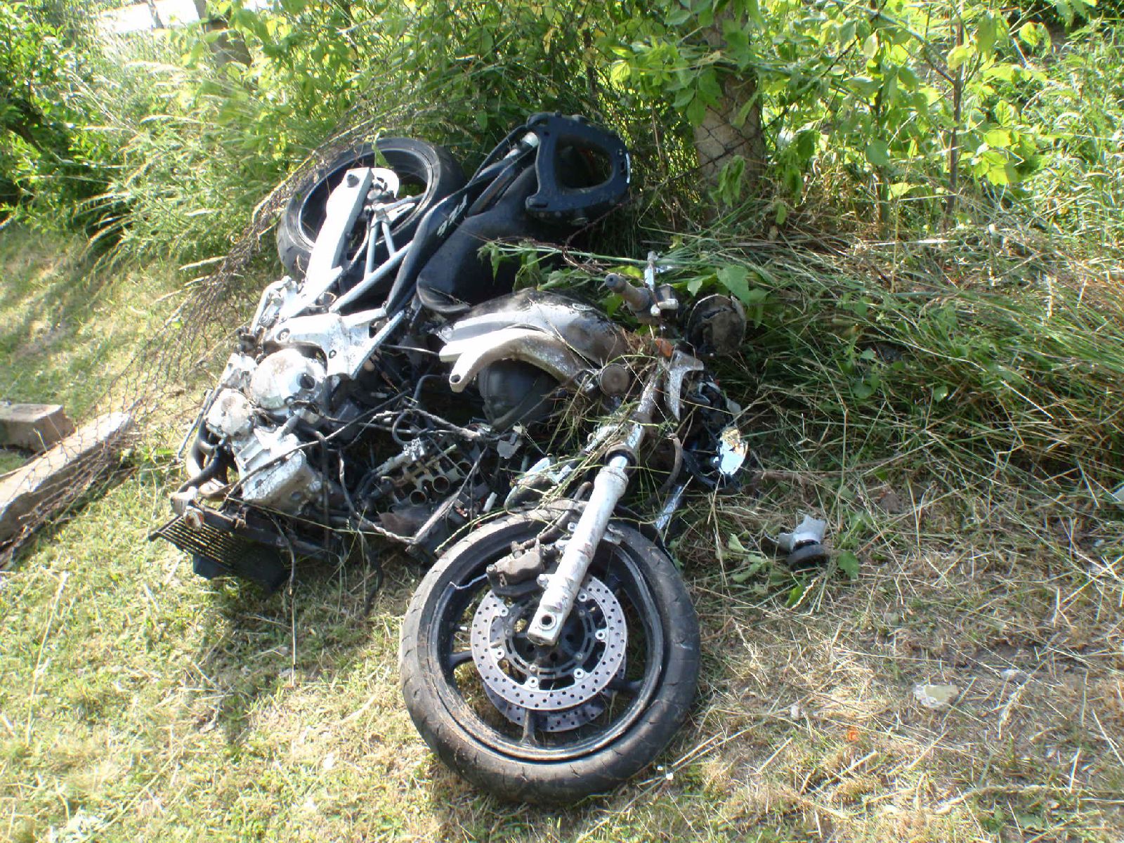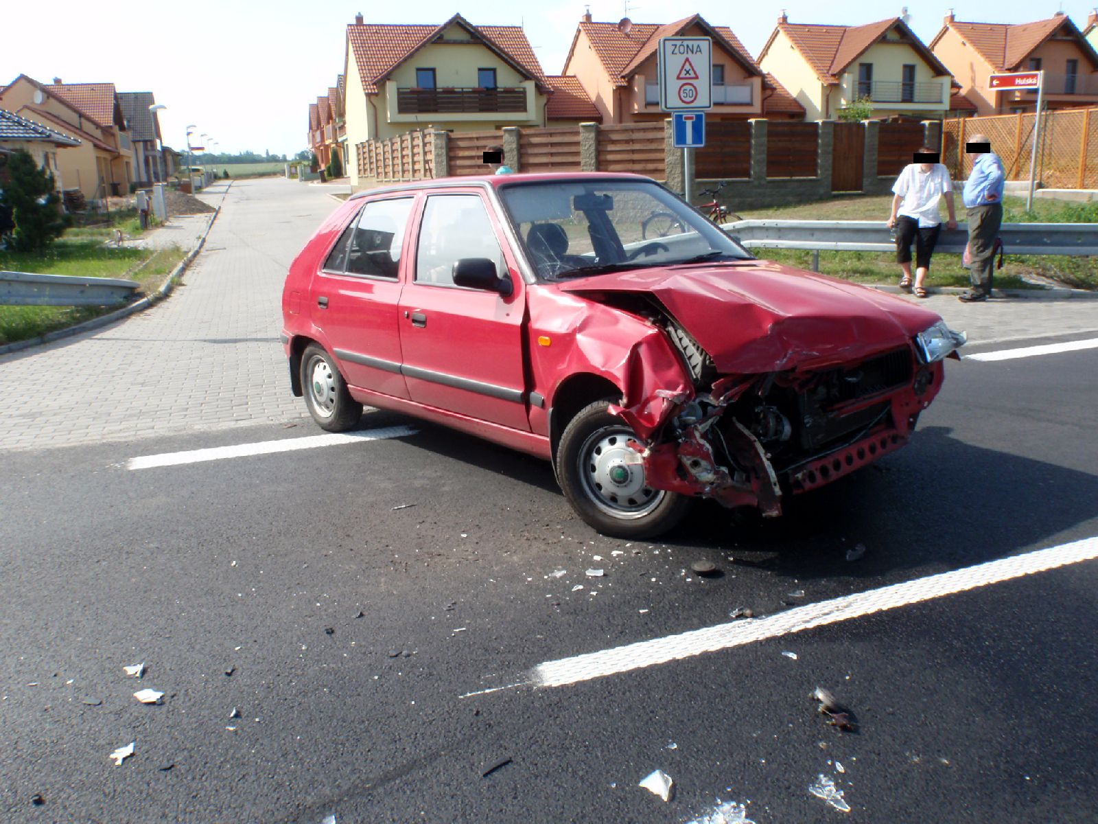 Na místě nehody bylo zjištěno, že došlo ke střetu motorkáře jedoucí po hlavní komunikaci s osobním vozidlem vyjíždějícím z ulice od zástavby rodinných domů. Po střetu zůstalo osobní vozidlo s poškozenou přední části v prostoru křižovatky a motocykl i s řidičem skončil o několik desítek metrů dál v příkopu u betonové propusti pod komunikací. Zcela zdemolovaný motocykl Yamaha ještě strhnul blízké oplocení.