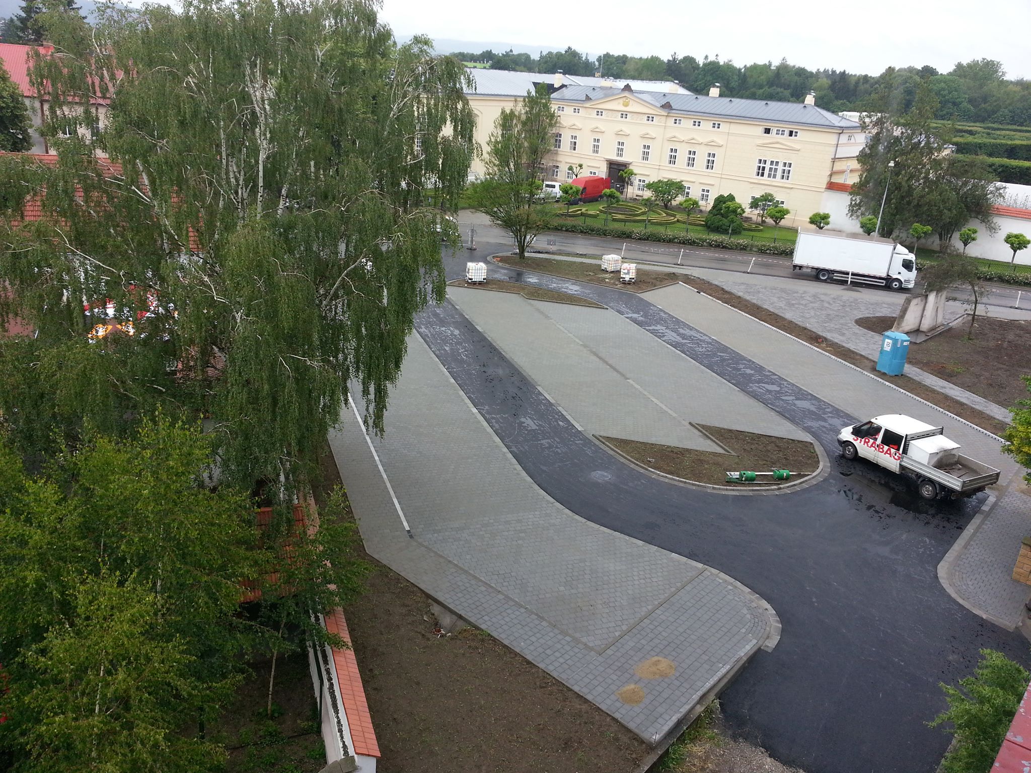 Oprava začala 7. dubna. Projekt, který se jmenuje „Úprava nástupní plochy před Květnou zahradou v Kroměříži“, zahrnuje komplexní rekonstrukci přilehlého parkoviště včetně zvětšení kapacity parkoviště pro osobní vozidla a vyhrazení parkovacích míst pro tělesně postižené.
