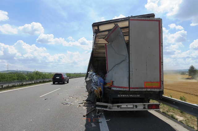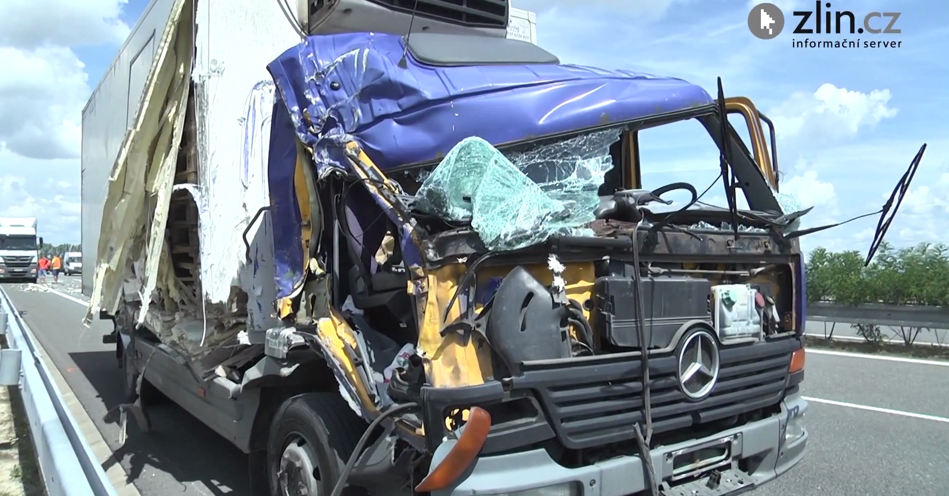 Při hrozivě vypadající nehodě vyvázli zcela bez zranění. Třiatřicetiletý řidič nákladního vozidla Mercedes s návěsem Schwarzmüller jel po rychlostní komunikaci směrem na Otrokovice. Po defektu kola auto odstavil na krajnici. Právě, když se chystal vstoupit do vozovky, ale naštěstí tak neučinil, narazil do levého zadního boku návěsu právě projíždějící nákladní vůz Mercedes Benz jedoucí stejným směrem.