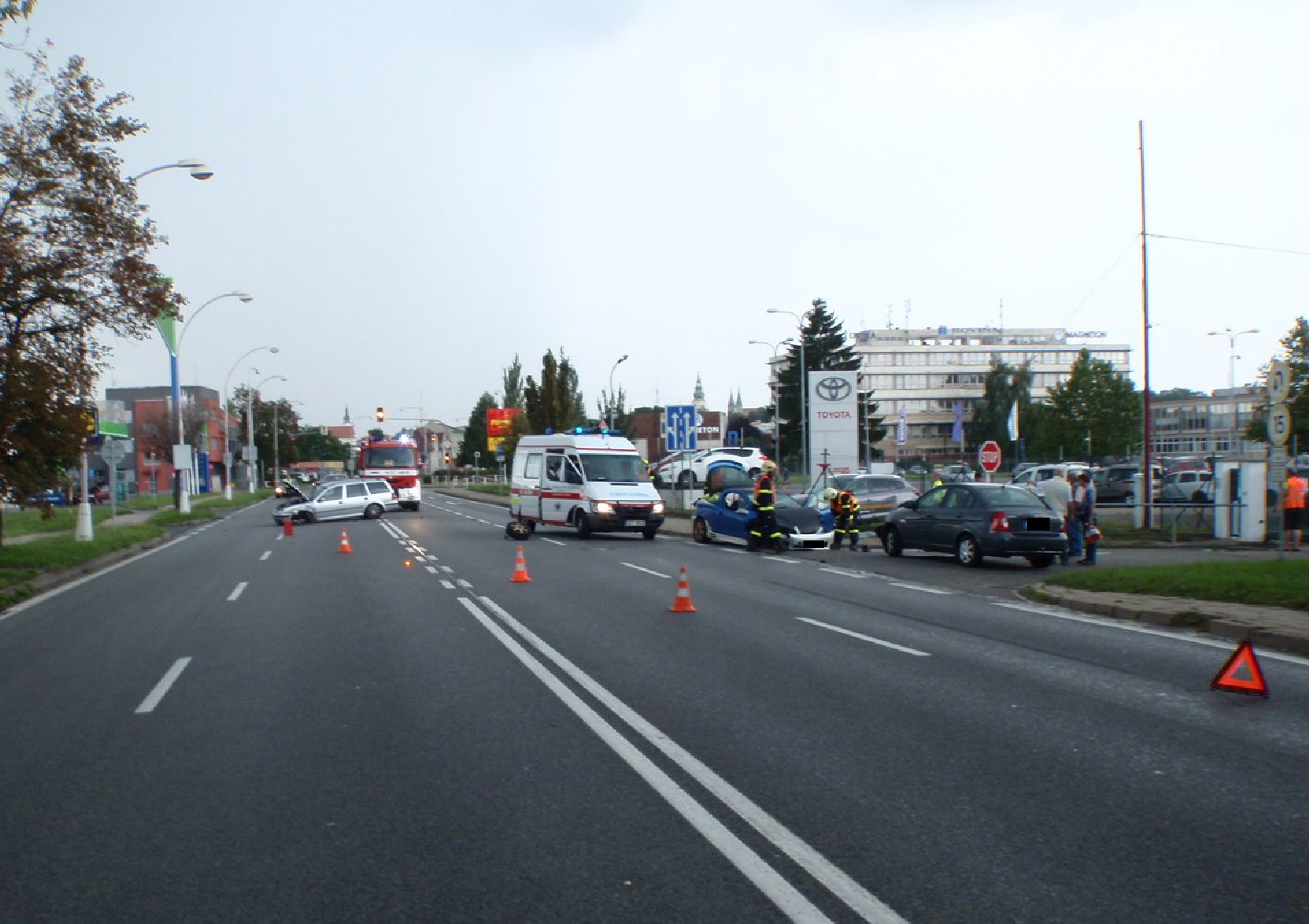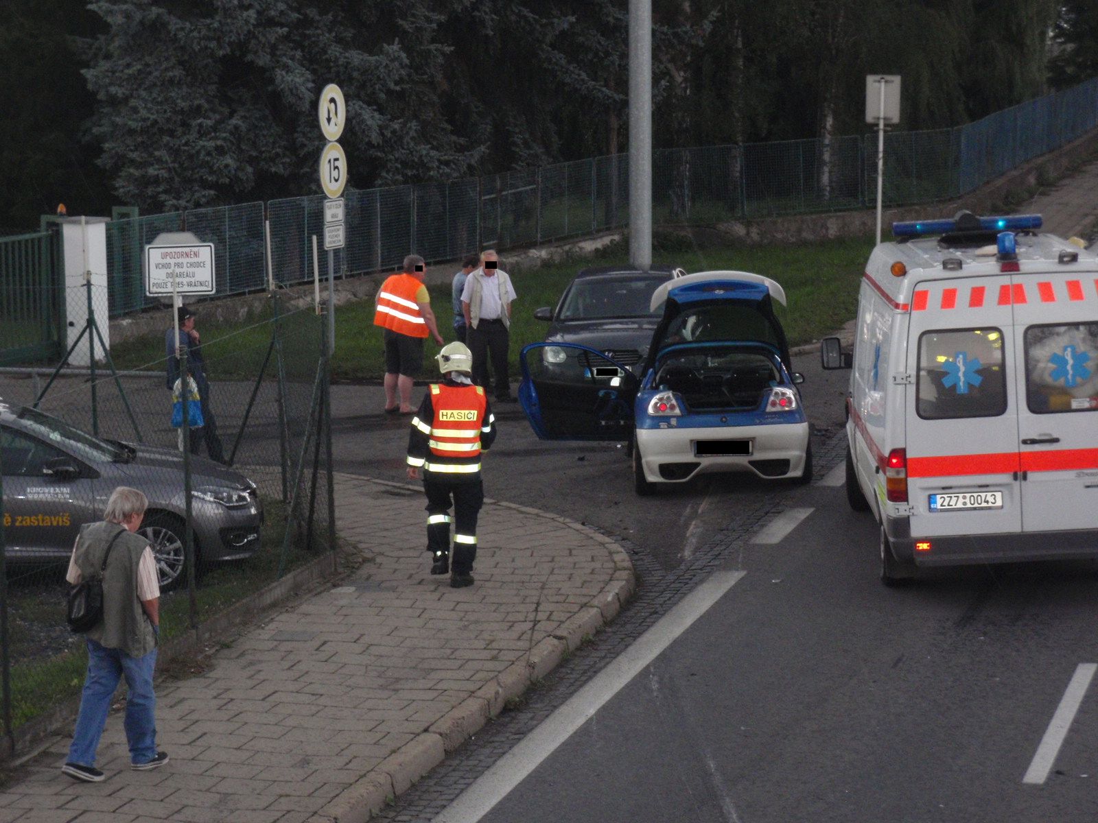 Po kolizi vozidel zn. Opel Tigra, Hyundai a VW Golf došlo ke zranění dvou účastníků nehody a úniku provozních kapalin ze dvou havarovaných vozů.