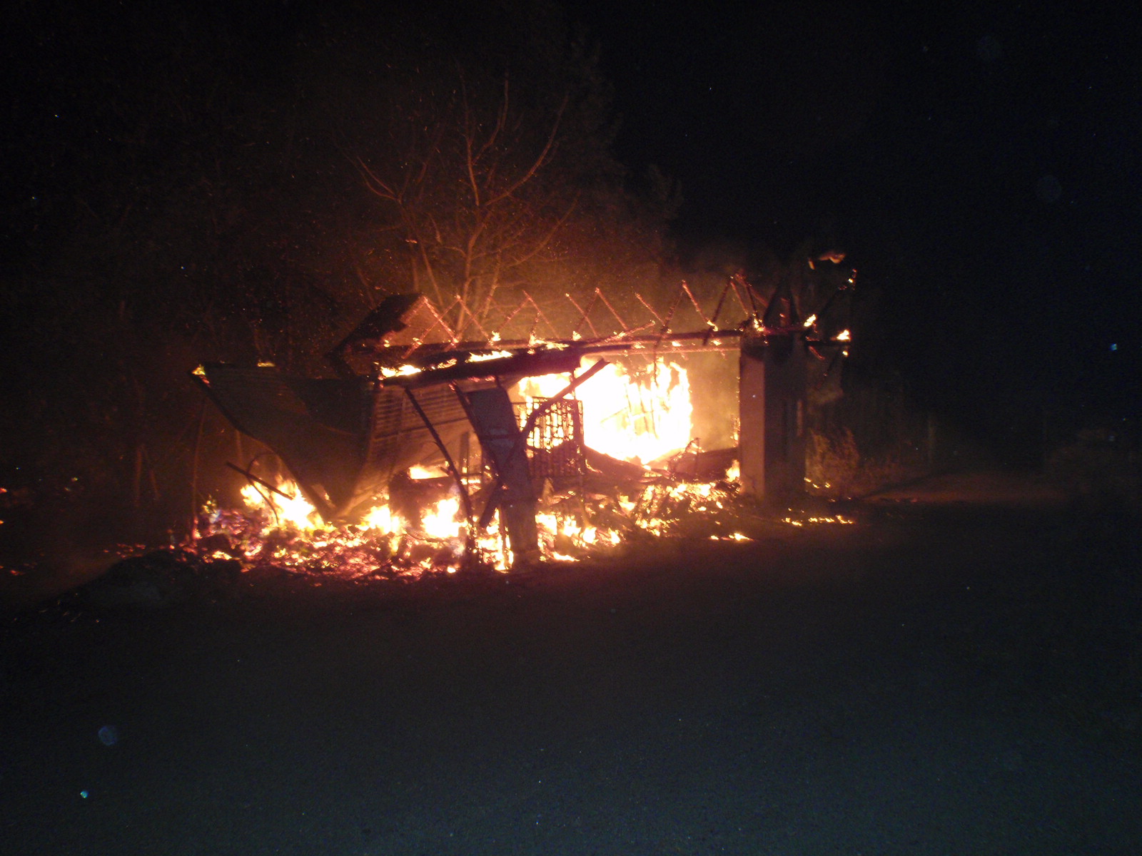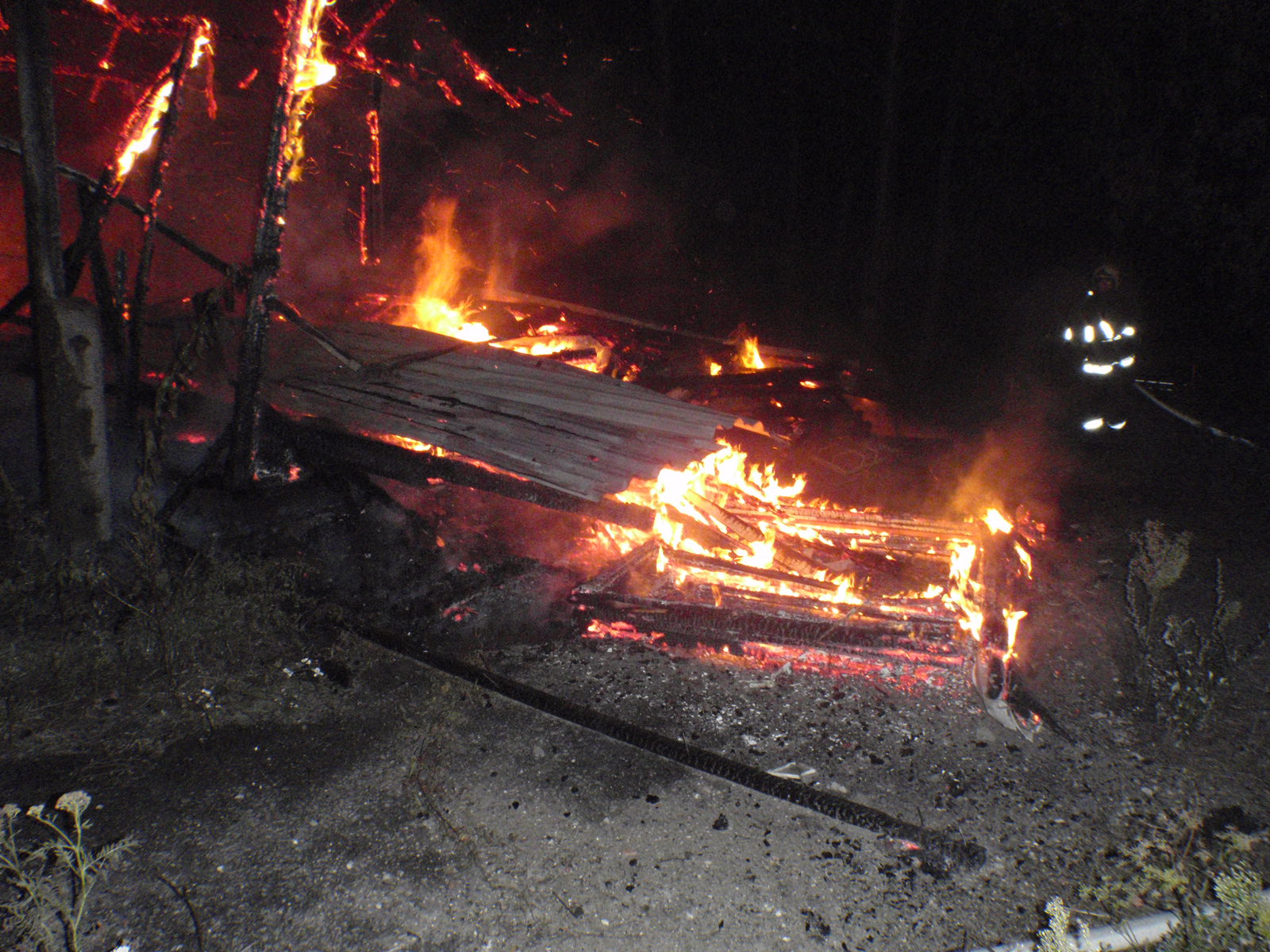 Jednalo se o částečně zděný objekt o rozloze cca 3 x 9 metrů, ke kterému byly navíc přistavěny unimobuňky. V době příjezdu jednotek na místo byl již objekt celý v plamenech a došlo k propadu střechy.
