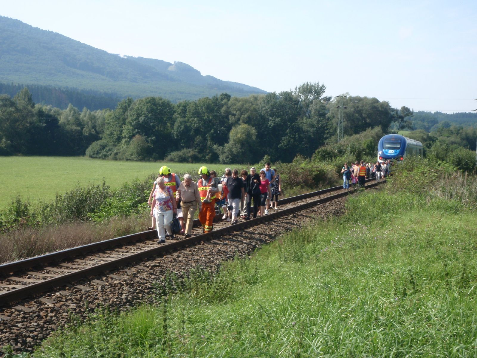 "Jak bylo velitelem zásahu hlášeno, bylo nutné evakuovat více jak třicet osob, které cestovaly ve vlaku v době nehody. Jejich bezproblémovému opuštění vagonů bránil nebezpečná sráz železničního náspu. Na místo události byly proto povolány posilové jednotky dobrovolných hasičů z obcí Podhradní Lhota, Komárno a Kunovice. Hasiči pak vytvořili koridor, kterým všechny cestující evakuovali," sdělil mluvčí Hasičského záchranného sboru Kroměříž Libor Netopil.