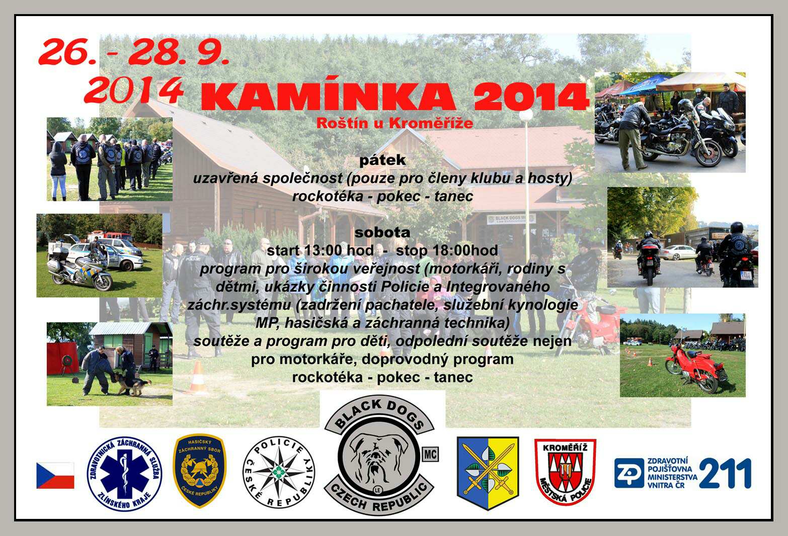 V sobotu 27. září 2014 od 13 hodin připravili členové motorkářského klubu BLACK DOGS LE MC v rámci svého setkání na Kamínkách v Roštíně program také pro veřejnost.