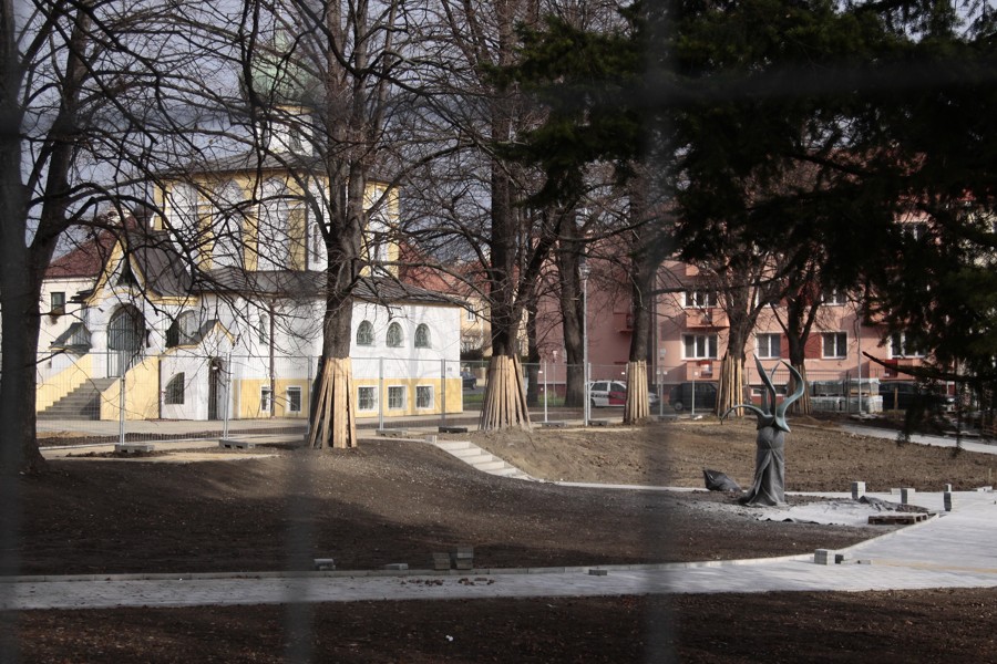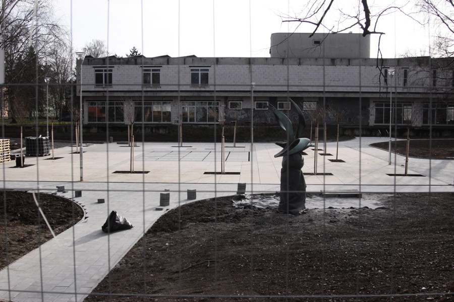 Součástí revitalizace Slovanského náměstí byla tedy také výsadba nových dřevin, a to jak v místě před budovou obchodního domu, tak i před Knihovnou Kroměřížska.