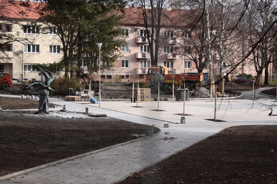Práce měly být podle původního harmonogramu hotové do konce měsíce října. Bohužel deštivé podzimní dny způsobily komplikace, které znesnadnily práce především těžké techniky a tak se termín dokončení o měsíc oddálil. Nyní jsou již stavební práce na Slovanu hotové, dolaďují se poslední detaily a na řadě je vybavení prostoru novým mobiliářem.
