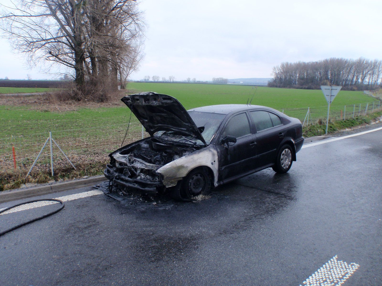 Technická závada stála za vznikem požáru osobního motorového vozidla zn. Škoda Octavia, ke kterému došlo v pondělí před polednem na sjezdu z rychlostní komunikace R55 mezi Hulínem a Kroměříží.