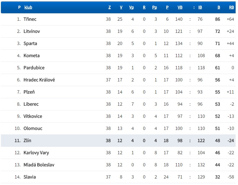 Aktuální extraligovou tabulku naleznete v obrazové příloze.