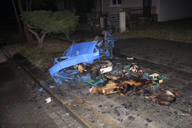 V noci z pondělí na úterý v době od 23:45 do 23:50 hodin řádil v Kroměříži neznámý žhář. Ten úmyslně na ulici Úprkova zapálil plastový kontejner na odpadky, od kterého začaly hořet i vedle stojící dva kontejnery a také poblíž zaparkovaný automobil Škoda Fabia.