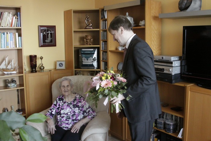 Významné životní jubileum přišel s paní Kytnerovou oslavit i starosta Kroměříže Jaroslav Němec (viz foto). Popřál jí do dalších let především zdraví a optimismus a vyjádřil svůj obdiv nad kondicí, v jaké nejstarší Kroměřížanka je. Na závěr oba vyjádřili přání, aby se za rok setkali při příležitosti půlkulatého životního jubilea paní Kytnerové.