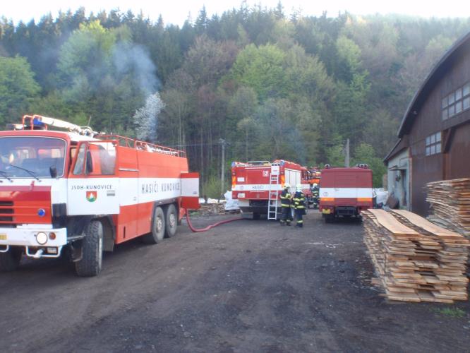 Profesionální hasiči jednotky Bystřice pod Hostýnem a hasiči dobrovolných jednotek obcí Podhradní Lhota, Rajnochovice a Kunovice zasahovali v pondělí po šesté hodině ranní v areálu dřevařského podniku v obci Rajnochovice. Požár zasáhl piliny uložené v zásobníku kotelny.