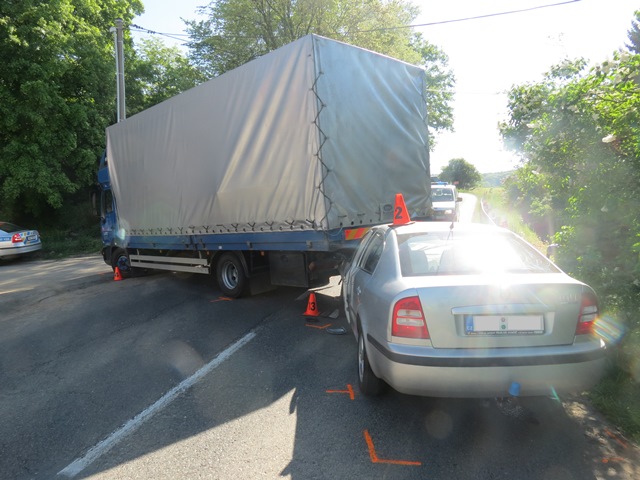 Čtyřiatřicetiletý řidič nákladního automobilu značky MAN couval z účelové cesty od pekárny na hlavní komunikaci a při tom přehlédl osobní automobil Škoda Octavia jedoucí ve směru od Zdounek.