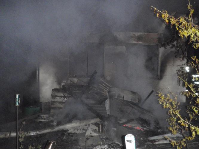 Zahradní chatka o půdorysu asi 5x2 metru byla v době příjezdu hasičů zcela zachvácena plameny. Její interiér byl požárem zničen a došlo k propadnutí střešní konstrukce. I přes komplikace s dostupností místa, dostali hasiči do dvanácti minut požár pod svou kontrolu.
