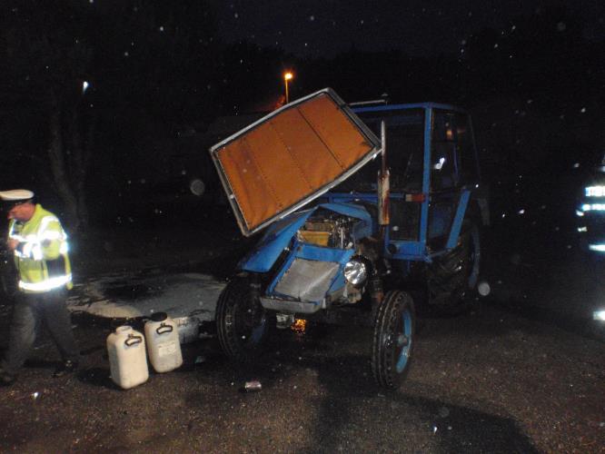 Řidič nadýchal 2,21 promile, ale nejen to, pozitivní byl i test na drogy. Traktor také neměl SPZky.