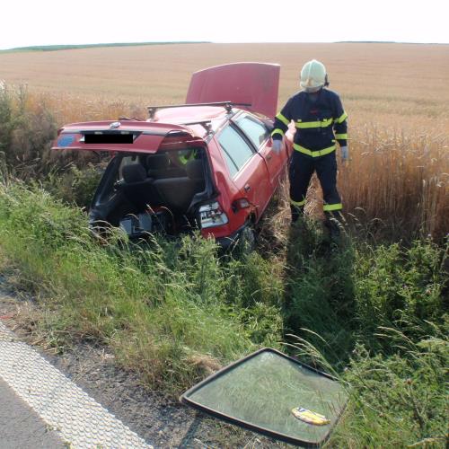 K nehodě osobního vozidla došlo na komunikace mezi městskou částí Kroměříž – Vážany a obcí Jarohněvice. Při převrácení vozidla došlo ke zranění řidiče. Hasiči, kteří dorazili těsně před sanitou zdravotnické záchranné služby, mu začali poskytovat první pomoc. Následně si ho do své péče převzali zdravotníci. Hasiči zajistili vozidlo proti vzniku požáru a úniku provozních kapalin. Příčinu nehody vyšetřuje policie.