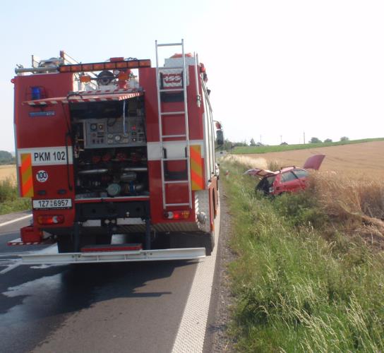 Pět minut po vysláni jednotky k dopravní nehodě byl na stanici kroměřížských hasičů znovu vyhlášen poplach. Další jednotka směřovala na místo hlášeného požáru obilí u cyklostezky v Kvasicích.