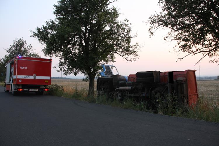 Dvě profesionální jednotky hasičů z Kroměříže a Holešova zasahovaly v pondělí večer u dopravní nehody nákladního vozidla značky Avia u obce Kurovice.