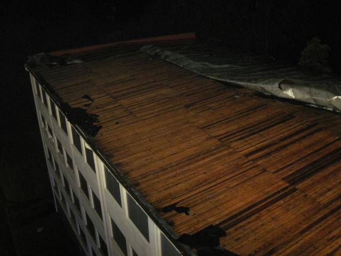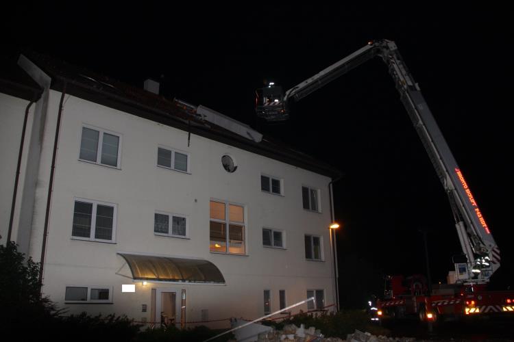 Šest výjezdů bylo k zabezpečení poškozených střech. Nejvíce zde byla poškozena firma ve Vsetíně a bytový dům v Otrokovicích. Ve Vsetíně se majitel podílel na zabezpečení střechy o ploše asi 1250 metrů čtverečních, kdy si sám obstaral plachty a desky na provizorní zakrytí střechy.
