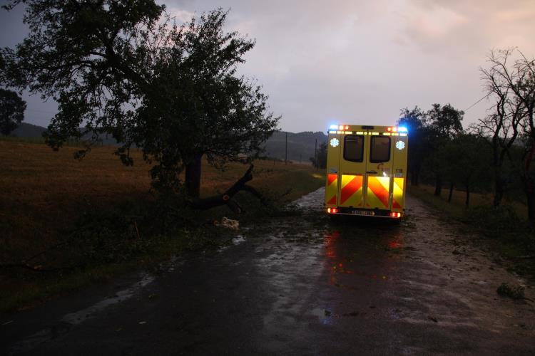 Ve Vizovicích, na silnici směr na Loučku, byli při řezání stromu zasaženi bleskem tři dobrovolní hasiči z obce Vizovice. Na místo se dostavila Zdravotnická záchranná služba. Sanitka po ošetření odvezla dva hasiče do Krajské nemocnice Tomáše Bati ve Zlíně. Třetí hasič pokračoval dál ve své práci. Při dalším výjezdu byl převezen na pohotovost do Zlína, protože se u něj projevily příznaky nevolnosti.