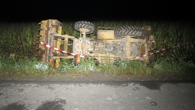 Večer před desátou hodinou pak hulínští policisté přijali oznámení, že mezi Skašticemi a Chropyní se v příkopu nachází havarovaný pracovní stroj. Pachatel, který se caterpillaru zmocnil, s ním sjel do příkopu a tam se vozidlo převrátilo na pravý bok. Poté z místa utekl neznámo kam.