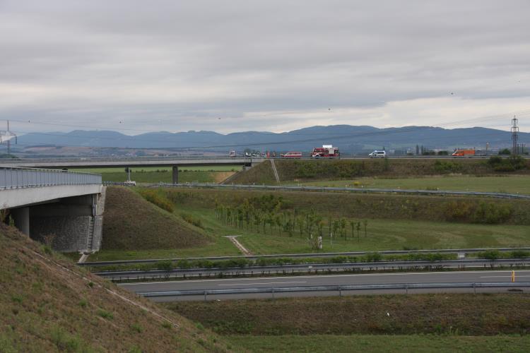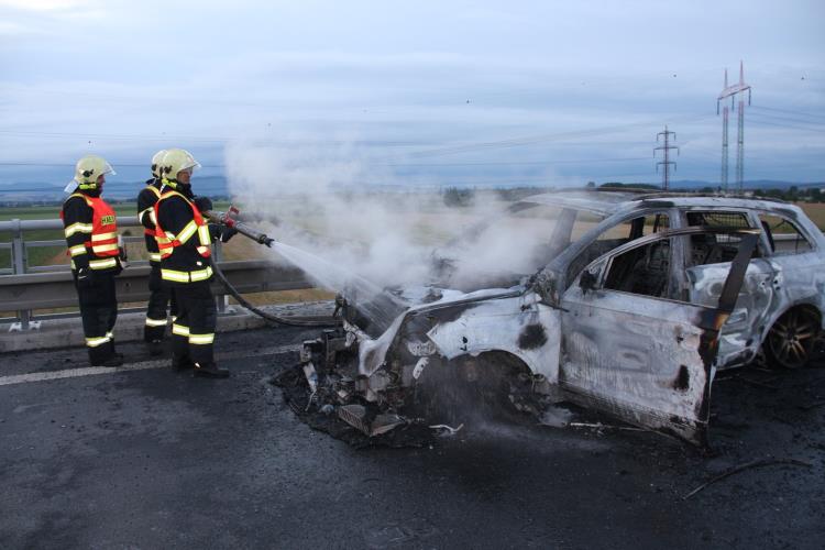 Hasiči plameny uhasili pomocí jednoho útočného proudu vody. Provoz byl v jejím místě pouze jedním pruhem při snížené rychlosti.
