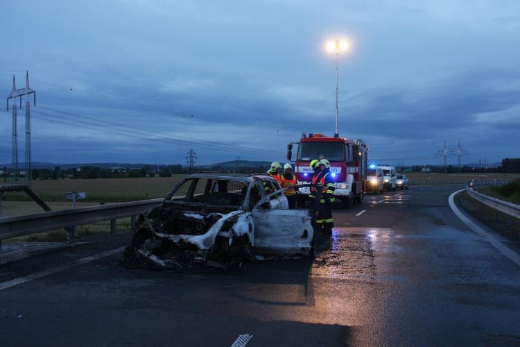 Dvě jednotky hasičů zasahovaly v neděli ráno u požáru osobního vozu na nájezdu na dálnici D1 v blízkosti Hulína.
