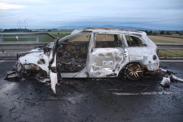 Při příjezdu bylo vozidlo Audi Q7 celé v plamenech. Na místě byla i Policie České republiky, která zjišťovala totožnost řidičky vozu.