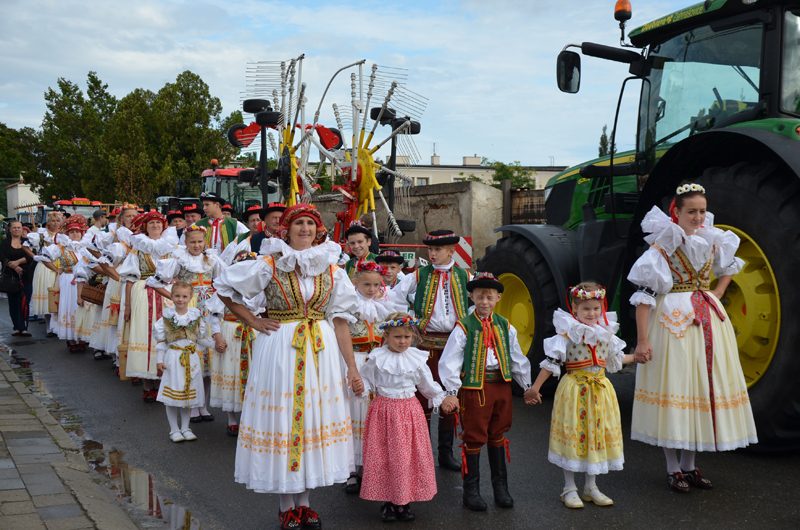 Hlavní dožínkový program proběhl v neděli dopoledne. V devět hodin ráno vyšel od kovárny slavnostní průvod, který mířil přes náměstí do kostela, kde se konala mše svatá.
