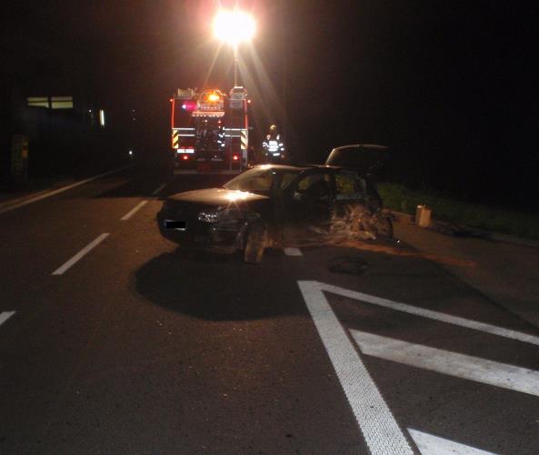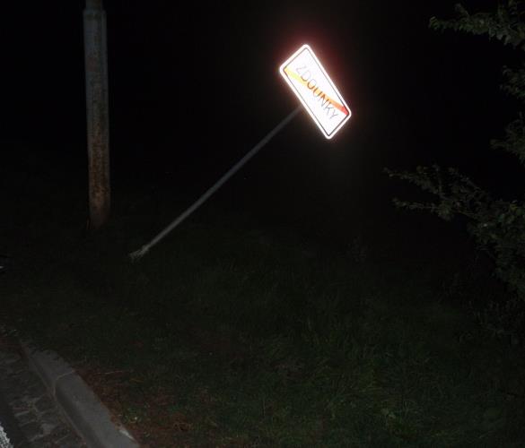 "Řidič při průjezdu pravotočivou zatáčkou nepřizpůsobil rychlost jízdy, přejel vlevo mimo komunikaci a tam narazil do dopravní značky označující konec obce, dále do sloupu veřejného osvětlení a nefunkčního betonového telekomunikačního rozvaděče," popsala nehodu policejní mluvčí Simona Kyšnerová.