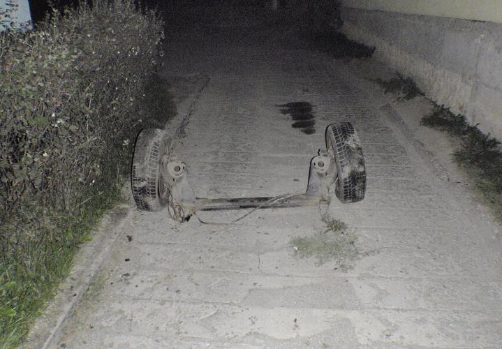 Havarované vozidlo, které při nehodě přišlo o svou zadní nápravu, částečně blokovalo hlavní komunikaci a výjezd z vedlejší ulice.