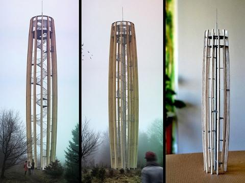 O návrh nové rozhledny se postarala brněnská architektka Marta Balážiková spolu se svým manželem. Rozhledna má tvar válcové věže a svým zvláštním tvarem a prohnutými lamelami zároveň odkazuje na tradici ohýbaného nábytku v nedaleké Bystřici pod Hostýnem. Mikroregionu Podhostýnsko se podařilo na rozhlednu získat dotaci z EU, rozpočet staby byl téměř osm milionů korun.