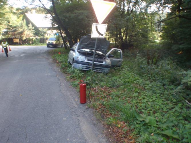 "Řidička sjela z komunikace do příkopu, kde narazila do dopravní značky a železobetonového sloupku. Náraz poškodil také skříň blíže nespecifikovaného měřícího zařízení," uvedl mluvčí hasičů Libor Netopil.