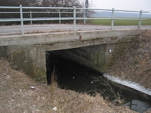 Povrchová voda je z mostu odváděna příčným sklonem a podélným spádem vozovky do nových žlabů, které jsou zaústěny do toku. Dno toku bylo upraveno dlažbou z kamene. V rámci rekonstrukce mostu byla provedena oprava a rozšíření komunikace před a za mostem v délce 56 metrů.