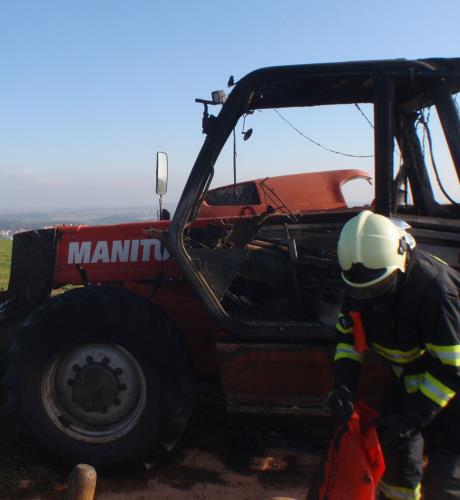 V úterý o půl deváté došlo na pozemku pole mezi obcemi Kvasice a Nová Dědina k požáru zemědělského manipulátoru zn. Manitou. Na místo hlášeného požáru byly vyslány jednotky profesionálních hasičů ze stanic Otrokovice a Kroměříž. Současně byl vyhlášen požární poplach i jednotce dobrovolných hasičů obce Kvasice.