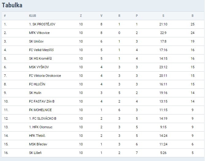 V 9. kole Moravskoslezské fotbalové ligy posbírali týmy z Kroměřížska 4 body. Hanácká Slavia Kroměříž si po prohře v minulém kole s lídrem ligy Prostějovem 3:0 spravila chuť a stejným rozdílem na domácím trávníku porazila Břeclav. První gól zaznamenal v 39. minutě Žák, po výměně stran se dvěma góly v rozmezí pěti minut blýskl domácí Ševčík.