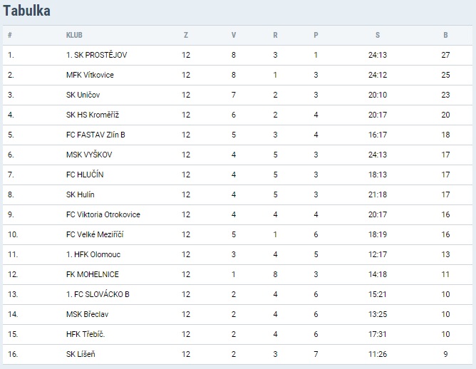 Domácí fotbalisté jsou v soutěži nováčkem, ale v podstatě ihned se uchytili na špici tabulky. Hulínští chtěli odčinit nešťastnou prohru minulý týden s HFK Olomouc, a to se podařilo. Spartak přehrál Vítkovice 1:0 brankou Krhuta ze 74. minuty.
